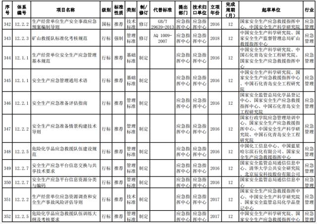 应急管理推荐性标准。修订生产安全事故应急预案编制标准。