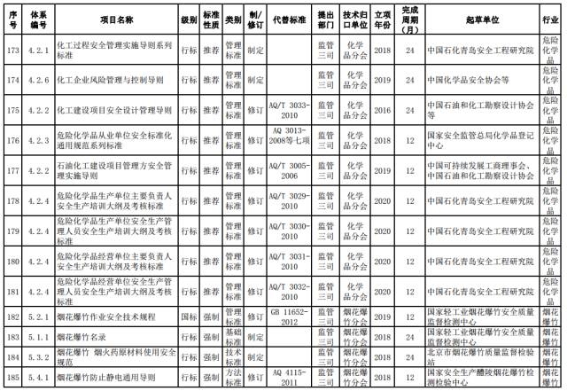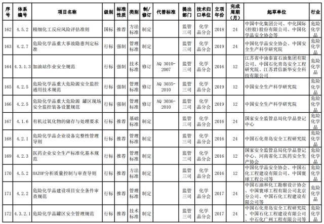危险化学品推荐性标准。制定精细化工反应安全风险评估标准,化工园区安全管理系列标准。
