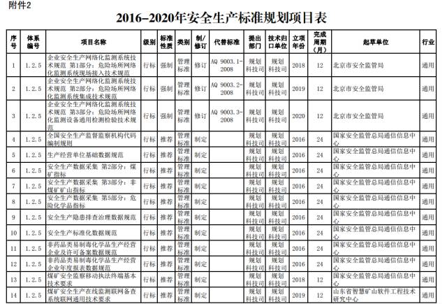 2.2016-2020年安全生产标准规划项目表