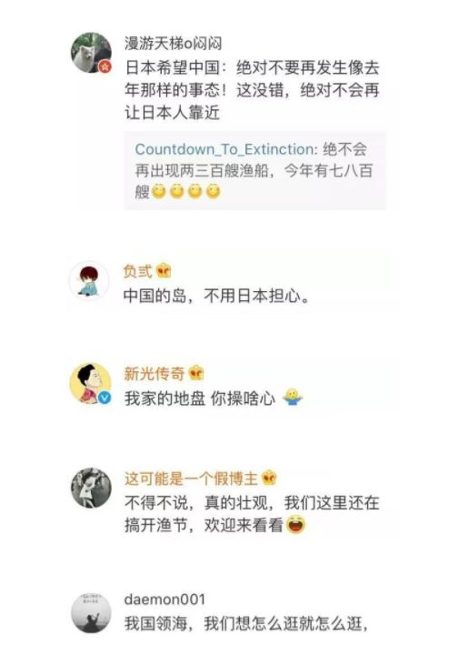 靠日舰最近的三层渔船没几个人,都满载着汽油等易燃易爆物,眼见着天黑了,中国渔民还叼着烟斗打着火把巡船,日舰官兵见着忽忽悠悠的火把直发晕,最可怕的是外围的中国渔船居然放起了焰火庆国庆!日舰就这么提心吊胆得过了一夜,看了一夜可怕的焰火......