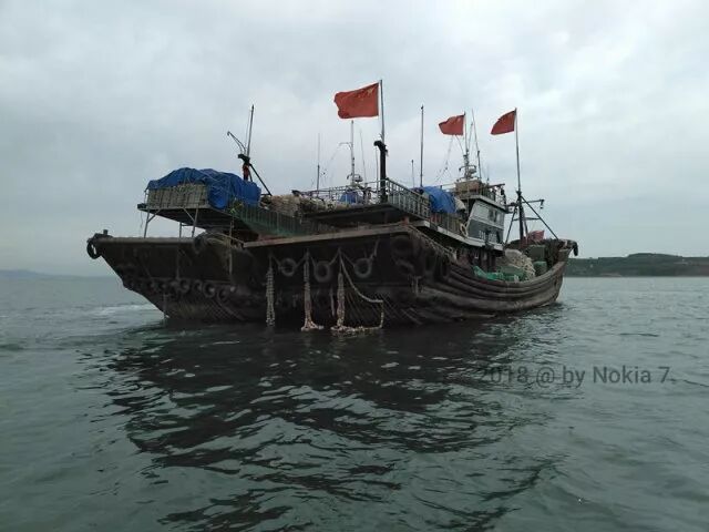 甘井子区农海局渔政科科长赵勇介绍说,5 月 20 日 17 点左右,他在岸边的执法观测点用望远镜观测到辖区海面有可疑船只,于是立刻带着两名执法人员驾驶执法艇驶向船只并登船检查,当时这两艘大马力渔船正在机器的轰鸣声中收网,执法人员当即让机器停止。" 这两艘船已经捕捞得差不多了,要不是我们及时发现,他们早就跑了。" 赵勇说,两艘渔船均来自葫芦岛,第一次到大连海域偷捕,如果不是被查扣,他们还打算去旅顺海域继续偷捕。执法过程中船主和船员较为配合,并承认了存侥幸心理违反休渔规定偷捕获利。