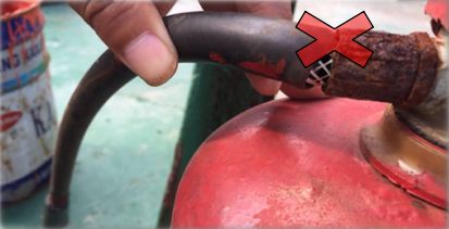 2、船舶配备的灭火器腐蚀严重,且破裂。