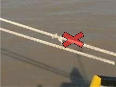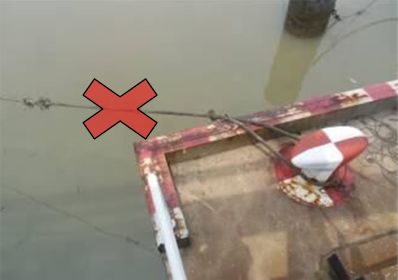 5、缆绳相互交叉;首缆系带松弛,两根缆绳受力不均匀。