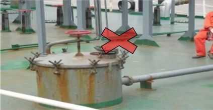 1、甲板落水孔未按要求封堵,在突发溢油事故时易使污染范围扩大。